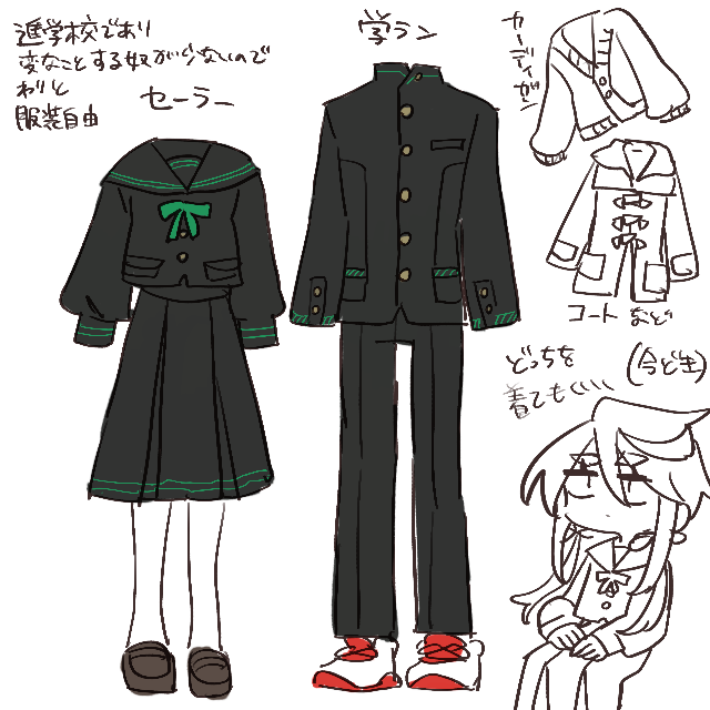 前描いたやつをデザイン画にしたり。やっぱ学ランセーラーが好きです。