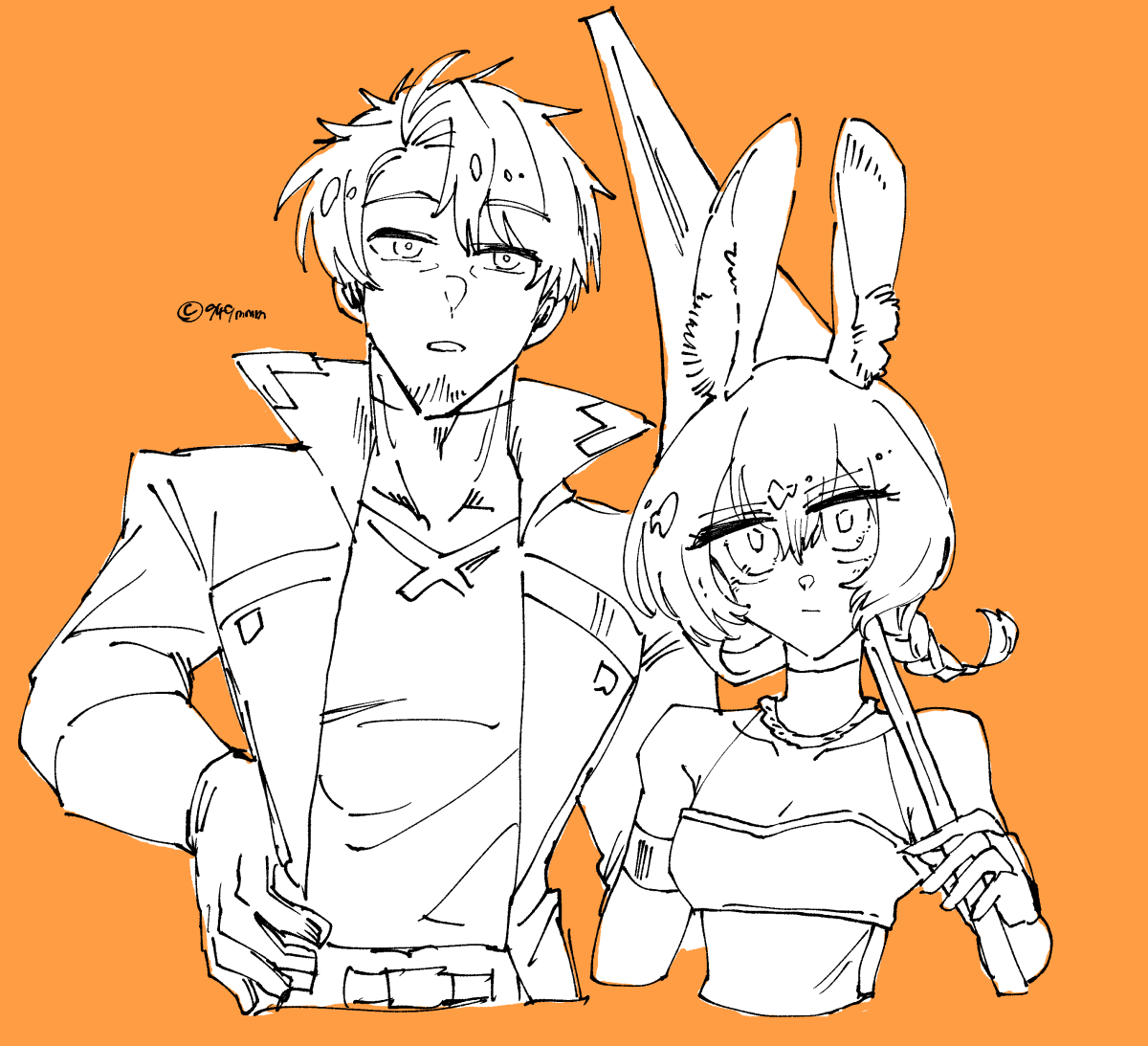 これは長年お世話になっている949さんのキャラクターの二次創作絵ですが、スマホが爆発した時消えてしまうため、サーバー上にプールさせておきます。許可ありがとね。