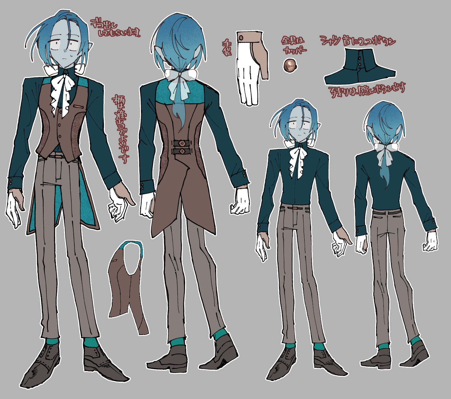 一応テーマはフォーマル着ということで、こちらはモルドくんに似合うだろうと思って落ち着いた感じのを提出していました。
