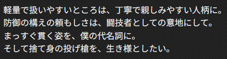 でもバリアブルスピアが実装されたらお気に入り武器を乗り換えるかもしれません。(浮気性)(弱体化されても理想の性能すぎるので)