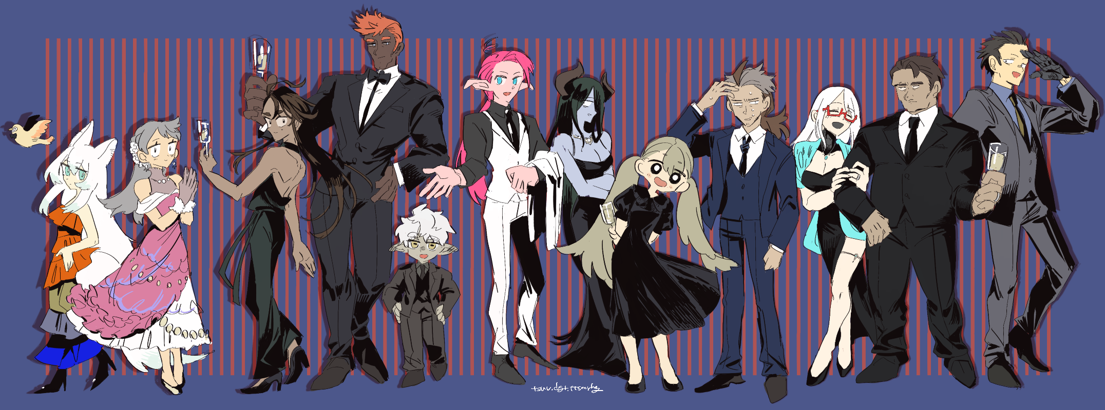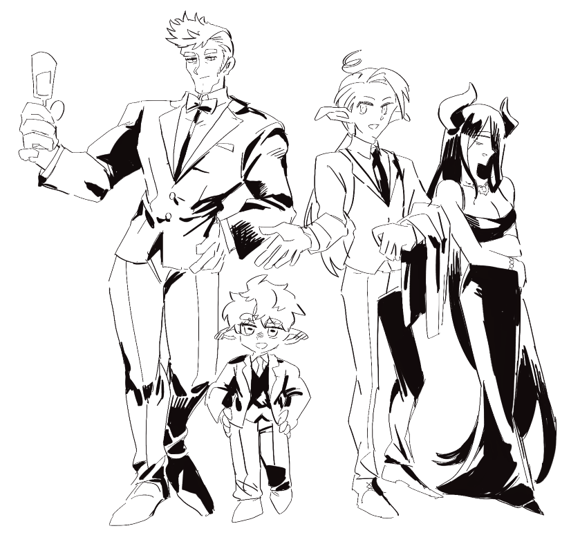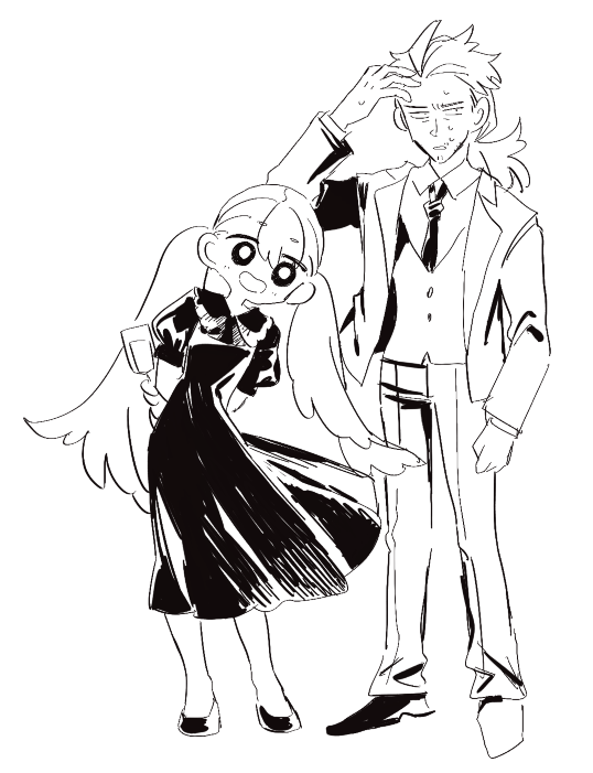 顔に陰影入れられるデザインの方が描いてて楽しいかも……。このおじさんが当主であるアンビデクスタ家は代々傭兵として名を馳せている両手利きの一族で、色んな国で権力者の側仕えをしていたことから、信仰圏には「力は両手でしか抱えられない」みたいなことわざがあるらしいです。#小話