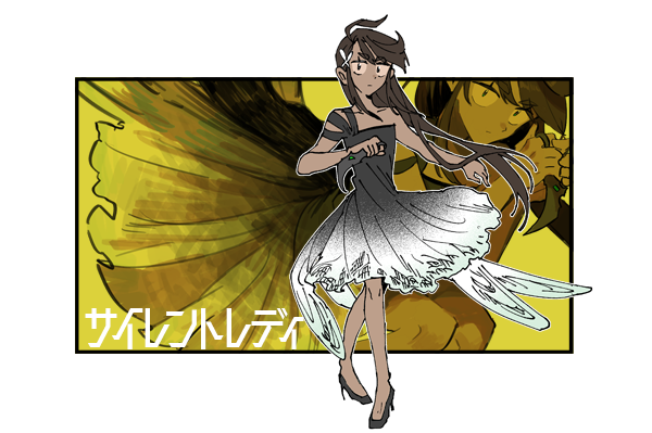 ドレスに短剣を合わせたかったのでダガーでもスティレットでもよかったんですけど、技名のビースティングってビー・スティングなんじゃん!(ビーストのほうかと思っていた)と気づき、こちらに。髪飾りや通常絵の背景のやつは、蜻蛉に対しての蝶のイメージ。